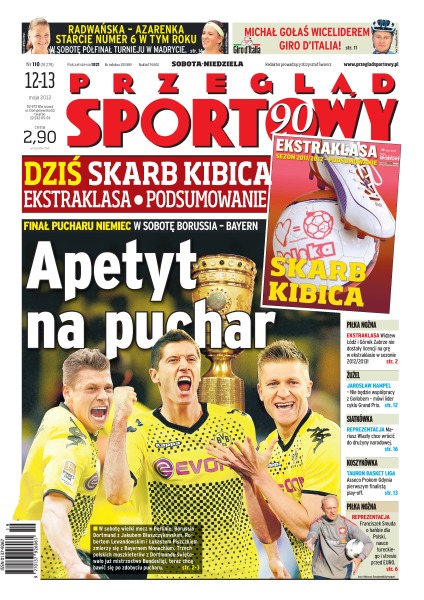Michał Gołaś został wiceliderem Giro d'Italia; w sobotę finał Pucharu Niemiec: Borussia Dortmund kontra Bayern Monachium; Widzew Łódź i Górnik Zabrze nie dostały licencji na grę w ekstraklasie w sezonie 2012/2013.