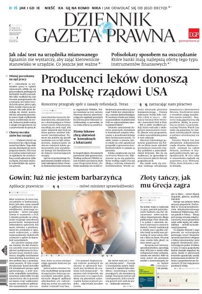 Producenci leków donoszą na Polskę rządowi USA; jak zdać test na urzędnika mianowanego; polisolokaty sposobem na oszczędzanie; aplikacje prawnicze nie będą skracane – mówi minister sprawiedliwości Jarosław Gowin; przez zastój w Unii Europejskiej handel Polski hamuje.