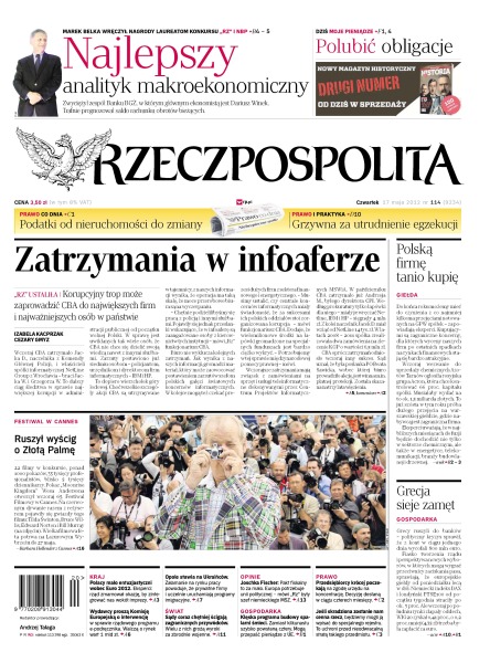 Korupcyjny trop może zaprowadzić CBA do największych firm i najważniejszych osób w państwie; mniej niż połowa Polaków jest zadowolona z organizacji turnieju Euro 2012; Beata Sawicka, posłanka PO oskarżona o przyjęcie łapówki, została skazana na 3 lata więzienia.