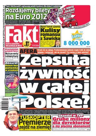 Strach iść na zakupy – przeterminowane jedzenie mogło trafić do wielu sklepów i restauracji; apel do premiera Donalda Tuska – „premierze zejdź na ziemię”; skandal w TVP – grube miliony dla dyrektorów a my płacimy abonament; Peszko klękał przed Smudą – czy trener wybaczy piłkarzowi; sprawdzone sposoby, jak dostać podwyżkę renty lub emerytury.