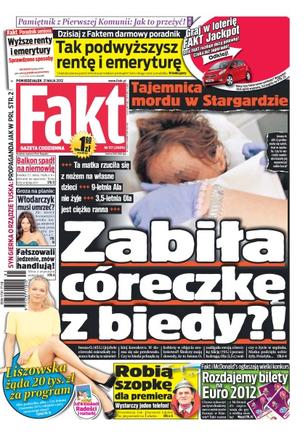 Tajemnica mordu w Stargardzie – dlaczego matka rzuciła się z nożem na własne dziecko; afera z zepsutym jedzeniem powraca; jak podwyższyć rentę lub emeryturę; Joanna Liszowska żąda 20 tys. Zł za udział w programie; balkon spadł na niemowlę; pamiętnik z Pierwszej Komunii – jak to przeżyć; Agnieszka Włodarczyk może odejść z lubianego i popularnego serialu.