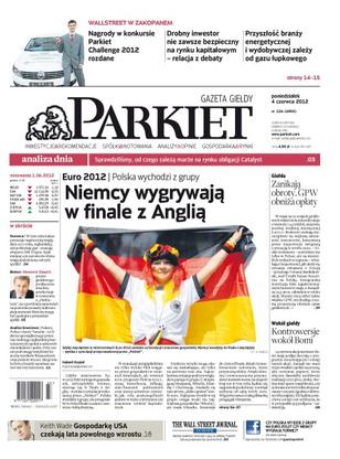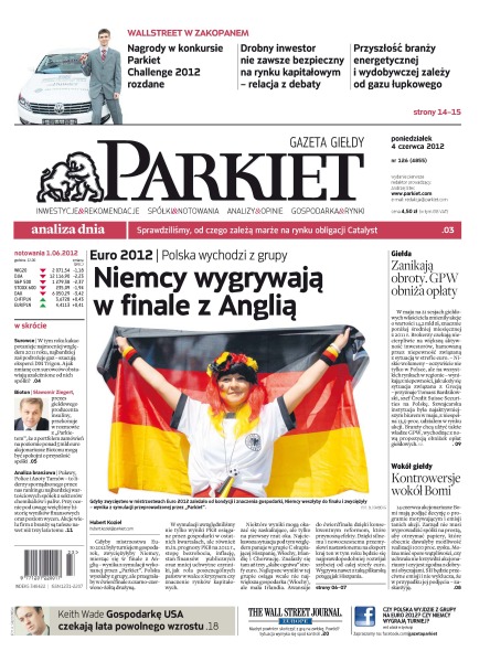 Niemcy wygrywają w finale z Anglią, Polska wychodzi z grupy – gdyby zwycięstwo w mistrzostwach Euro 2012 zależało od kondycji i znaczenia gospodarki, Niemcy weszłyby do finału i zwyciężyły; przyszłość branży energetycznej i wydobywczej zależy od gazu łupkowego; zanikają obroty, GPW obniża opłaty – W maju na 21 sesjach giełdowych właściciela zmieniły akcje o wartości 14,2 mld zł, znacznie poniżej średniej miesięcznej z 2011 roku; eksperci DM Trigon szacują, że w tym roku kakao potanieje najmocniej względem roku 2011, a najbardziej podrożeje gaz; Puławy, Police i Azoty Tarnów to liderzy rankingu najbardziej wartościowych spółek z sektorów chemikaliów i paliw.
