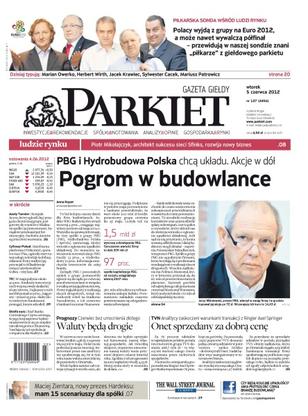 Pogrom w budowlance – PBG i Hydrobudowa Polska chcą układu, akcje w dół; piłkarska sonda wśród ludzi rynku – Polacy wyjdą z grupy na Euro 2012, a może nawet wywalczą półfinał – przewidują w naszej sondzie znani „piłkarze” z giełdowego parkietu; Piotr Mikołajczyk, architekt sukcesu sieci Sfinks, rozwija nowy biznes; Onet sprzedany za dobrą cenę – analitycy zaskoczeni warunkami transakcji TVN z Ringier Axel Springer; waluty będą drogie – czerwiec bez umocnienia złotego; rosyjski Acron, który ogłosił chęć przejęcia Azotów Tarnów, jest gotowy do rozmów z władzami spółki i jej inwestorami – szefowie Azotów są przeciwni wezwaniu; Cyfrowy Polsat i Polkomtel, operator sieci Plus, ogłosiły start nowej usługi, telewizji mobilnej; w maju jedynie około 40 procent funduszy inwestycyjnych wypracowało dodatnie stopy zwrotu; szef Banku Centralnego Cypru ostrzega, że jego kraj zapewne będzie musiał zwrócić się po międzynarodową pomoc finansową – nasilają się też spekulacje o wsparciu dla Madrytu.