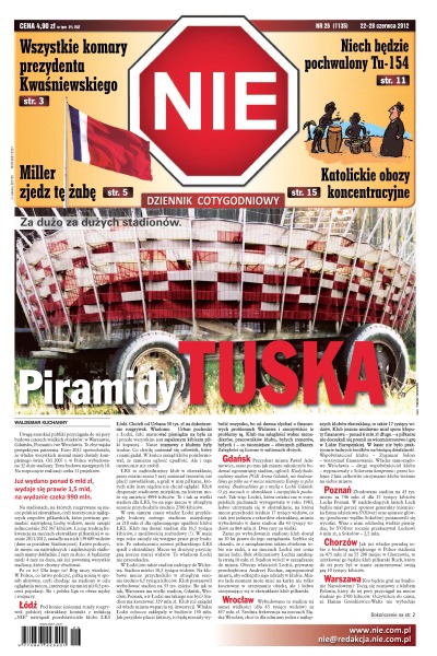 Kto zgłupiał bardziej – ruski fantasta czy polski publicysta; republikanie gryzą Obamę boleśniej, niż Kaczyński podgryza Tuska; katolickie obozy koncentracyjne – Terlikowski odpowiada na „Kod Leonarda da Vinci”; stadiony Donalda Tuska – już wydano ponad 6 mld zł, wydaje się prawie1,5 mld, na wydanie czeka 990 mln; wszystkie komary prezydenta Kwaśniewskiego.