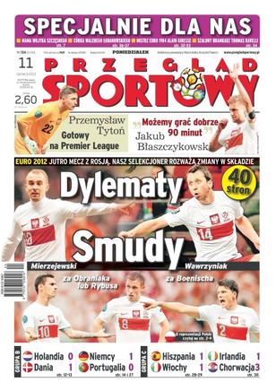 Franciszek Smuda myśli o zmianach w podstawowym składzie na wtorkowy mecz z Rosją; Przemysław Tytoń buntował się kiedyś, gdy trenerzy kazali mu zakładać rękawice – dziś to najlepszy bramkarz ligi holenderskiej i bohater pierwszego meczu Polaków podczas EURO; Cristiano Ronaldo i spółka trafiali w poprzeczkę oraz mieli świetne sytuacje – jednak to rywale szczęśliwi opuścili Lwów, a bohaterem Niemiec został Mario Gomez, który strzałem głową pokonał Rui Patricio; Jarosław Hampel w tym roku raczej nie zdobędzie medalu mistrzostw świata; Polacy przegrali z Brazylią i oddali mistrzom świata prowadzenie w grupie B; dwukrotna wicemistrzyni świata w skoku o tyczce Monika Pyrek osiągnęła w Nowym Jorku minimum olimpijskie – 4,50 m; Maja Włoszczowska pierwszy raz od 2008 roku nie zdobyła medalu mistrzostw Europy.