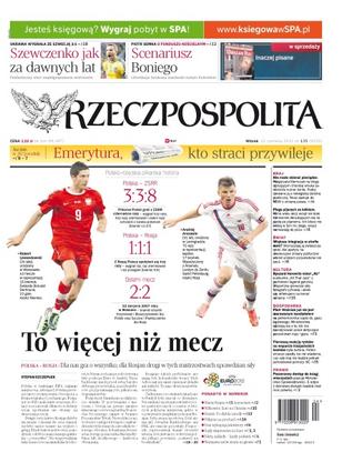 Polska – Rosja – dla nas gra o wszystko, dla Rosjan drugi w tych mistrzostwach sprawdzian siły; nawet polscy szalikowcy apelują, by nie dać się sprowokować, ale emocje wokół rosyjskiego marszu rosną; autorka blogu o chorobie wnuka stała się przedmiotem policyjnego dochodzenia, bo podała numer konta; Skarb Państwa sprzedawał jeziora prywatnym osobom; jak pacjenci szukają sposobów na zmuszenie państwa do finansowania drogiego i nowoczesnego leczenia; światowej sławy fotograf wyda album z portretami największych gwiazd jazzu; sportowcy coraz częściej sięgają po środki przeciwbólowe działające jak doping; rekord Bjoerna Borga poprawiony – siódme zwycięstwo Rafaela Nadala po dogrywce w poniedziałek.