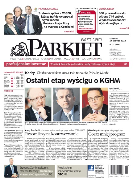Giełda nazwisk w konkursie na szefa Polskiej Miedzi; na ujawnienie całorocznego budżetu zdecydowało się w tym roku znacznie mniej spółek notowanych na GPW niż rok temu; wskaźnik Parabolic podpowiada, kiedy realizować zyski; Getin Noble Bank znowu myśli o przejęciach; wzrost cen wyhamował w maju do 3,6 proc. – jeśli to początek dalszych spadków, więcej zarobimy na lokatach.