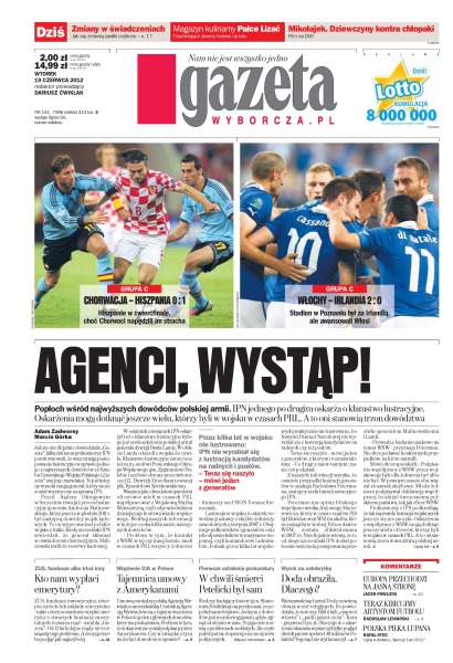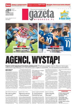 Popłoch wśród najwyższych dowódców polskiej armii – IPN jednego po drugim oskarża o kłamstwo lustracyjne; prawie dwie trzecie Polaków jest przeciwko związkom partnerskim dla homoseksualistów; chociaż prokuratura wszczęła śledztwo w sprawie śmierci gen. Sławomira Petelickiego, to na razie wszystko wskazuje na samobójstwo twórcy jednostki GROM; wygląda na to, że polski seksbiznes nie odnotuje spodziewanych zysków podczas Euro 2012; nowy francuski parlament będzie o wiele bardziej kobiecy i trochę bardziej różnorodny etnicznie; jakie będą zmiany w zasiłkach rodzinnych; czy mimo dużego wyboru używanych samochodów na rynku wtórnym w Polsce warto wybrać się po auto za granicę; ZUS, fundusze inwestycyjne, ubezpieczyciele lub zakłady emerytalne – takie cztery scenariusze wypłat emerytur z OFE rozważa rząd; dlaczego dobę po przegranym meczu z Czechami lista kandydatów na selekcjonera reprezentacji Polski ma już kilkanaście nazwisk.