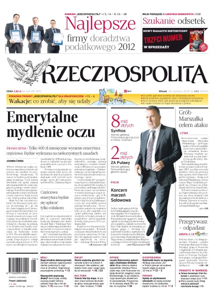 Dodatki: Ekonomia & Rynek, Prawo co dnia, Prawo i praktyka, Życie Warszawy, CO2 - stracimy czy zarobimy, Rzeczpospolita dla urlopowiczów, Firmy doradztwa podatkowego 2012.