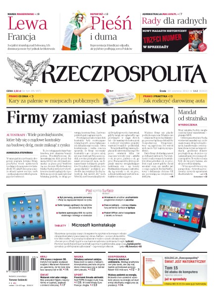 Czekali na taką okazję dziesięć lat, byli spragnieni zabawy, a Polska leży blisko Irlandii, więc zrobili inwazję; Instytut Pamięci Narodowej nie będzie już publikował książek z wydawcą, który okazał się oficerem SB; powiatom zaangażowanym w budowę autostrady A4 grozi skokowy wzrost bezrobocia; na kierunki zamawiane zgłosiło się trzy razy więcej chętnych, niż planowano; kryzys euro osłabił Unię nie tylko gospodarczo, ale i politycznie – partnerzy skrzętnie to wykorzystują; płatna ekspozycja z papieską krwią wywołała skandal – kuria krakowska twierdzi, że relikwii tam nie ma; uzbrojone drony w żołnierskim plecaku mają pomóc prowadzić wojnę z partyzantami; Ukraina odpadła i za porażkę z Anglią wini sędziego, a Szwecja pokonała Francję, wpychając ją do ćwierćfinału z Hiszpanią; reprezentacja szuka nowego trenera, a prezes Lato nie ma sobie nic do zarzucenia i nie zamierza ustępować.
