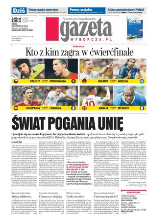 W Bydgoszczy trwają poszukiwania 21-letniego Irlandczyka; Polska, jak cała Europa, będzie refundować długo działające analogi insuliny; w przewidywalnej przyszłości Norwegia nie wejdzie do Unii – mówią zgodnie szef norweskiej dyplomacji i minister obrony; kryterium dochodowe uprawniające do świadczeń z pomocy społecznej nie było zmieniane od 2006 roku; kryzys europejskiej motoryzacji bije w Polskę – coraz bardziej maleje eksport polskich zakładów przemysłu motoryzacyjnego; rząd przeforsował swoje pomysły – wszyscy będziemy musieli pracować do 67 lat; czy jeszcze w tym roku 3 mln emerytów dostaną wyrównanie za niezgodną z prawem waloryzację; szef PZPN rozliczył piłkarzy z biletów i premii, ale nie podał się do dymisji; Iker Casillas był najlepszym graczem mistrzów Europy w fazie grupowej.