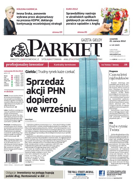 Gazeta Giełdy i Inwestorów Parkiet przyspiesza publikację e-wydania. Od poniedziałku, już od godz. 20.00, można kupić i przeczytać e-wydanie Parkietu, które w wersji papierowej ukaże się dopiero następnego dnia. Parkiet jest więc najświeższą gazetą finansową w Polsce.