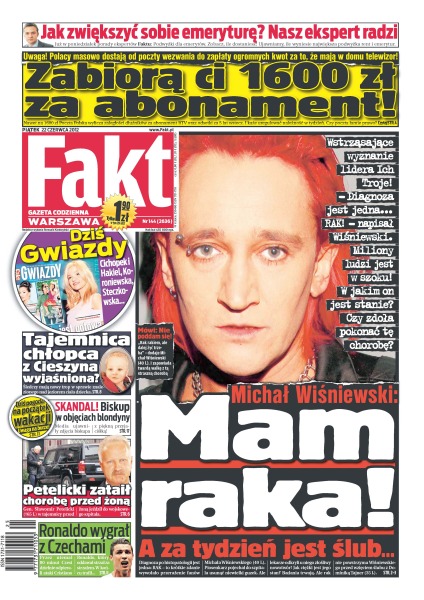 Michał Wiśniewski walczy ze złośliwym nowotworem; Poczta Polska straszy wpisem do rejestru dłużników, a sama narusza prawo; dlaczego generał Petylicki nie powiedział żonie o chorobie; czy tajemnica chłopca z Cieszyna została wyjaśniona; dramatyczne chwile na festiwalu kapel ludowych w Dębicy; co mały Rooney wywiezie z Polski; czy nastąpił przełom w sprawie zaginięcia Iwony; w poznańskim zoo urodził się unikatowy na skalę światową konik; Felicjańska piękna nigdy; skandal w Argentynie – ubrany tylko w kąpielówki argentyński katolicki biskup przytula się do kobiety w bikini, a ona z czułością go obejmuje, jakby była jego kochanką; Waldemar Fornalik popierany przez Antoniego Piechniczka i Berti Vogts, były trener reprezentacji Niemiec to kandydaci na selekcjonera biało-czerwonych; sensacji nie było – w meczu w Warszawie górą Portugalia.