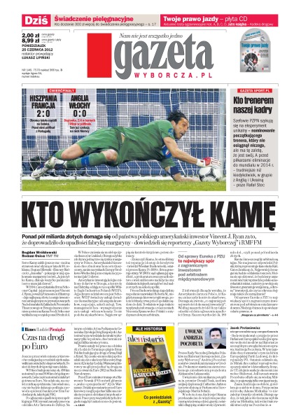 Ponad pół miliarda złotych domaga się od państwa polskiego amerykański inwestor Vincent J. Ryan za to, że doprowadziło do upadłości fabrykę margaryny; Mieczysław K., 63-letni funkcjonariusz SB, żąda 80 tys. zł; chłopiec ze stawu to Szymon – matkę prokurator oskarża o zabójstwo, ojca – że nie pomógł dwulatkowi, który przez kilkanaście godzin umierał w bólach; szefowie PZPN szykują się na eksperyment unikalny – nominowanie początkującego trenera, który nie osiągnął niczego.