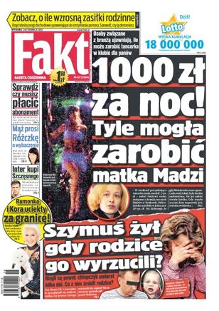 Ile mogła zarobić matka tragicznie zmarłej Madzi – osoby związane z branżą ujawniają, ile może zarobić tancerka w klubie dla panów; być może wcale nie musisz płacić haraczu na publiczne media; mąż prosi Różczkę o wybaczenie – czy znana aktorka zmieni zdanie; Inter kupi Szczęsnego – włoski klub jest poważnie za-interesowany bramkarzem; Ramonka i Kora uciekły za granicę.
