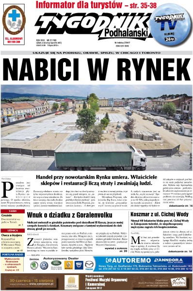 Handel przy nowotarskim rynku umiera – właściciele sklepów i restauracji liczą straty i zwalniają ludzi; nieliczni uwierzyli w góralskie państewko pod skrzydłami III Rzeszy – koszmary związane z tamtymi wydarzeniami do dziś straszą górali po nocach; niemal 40 lokatorów przy ul. Cichej Wody w Zakopanem twierdzi, że niepełnosprawny mężczyzna zagraża ich bezpieczeństwu; zażegnane zostało zagrożenie strajkiem w nowotarskim Miejskim Zakładzie Komunikacyjnym.