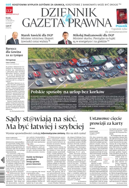 Dziennik Gazeta Prawna – codziennie obiektywne i rzetelne informacje z kraju i ze świata. Piszemy o tym, co dziś ważne i odpowiadamy na Wasze pytania – szczególnie te związane z obecnymi wyzwaniami tj. pandemia, praca zdalna. Na bieżąco wyjaśniamy zmieniające się przepisy. Wspieramy się wyjaśnieniami ministerstw i urzędów. Pomagamy unikać błędów i ostrzegamy, jakie są kary. Ponadto w każdy piątek specjalne magazynowe wydanie Dziennika Gazety Prawnej w całości z tekstami społeczno-ekonomicznymi.