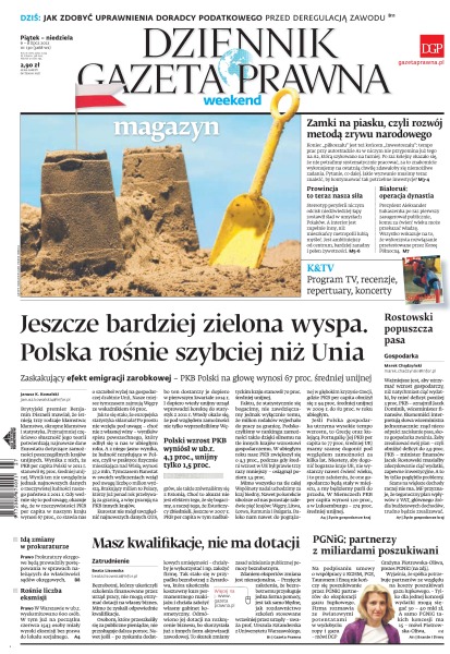 Jak zdobyć uprawnienia doradcy podatkowego przed deregulacją zawodu; jeszcze bardziej zielona wyspa – Polska rośnie szybciej niż Unia; zamki na piasku, czyli rozwój metodą zrywu narodowego; prokuratury okręgowe będą prowadziły postępowania w sprawach należących do właściwości sądów okręgowych.