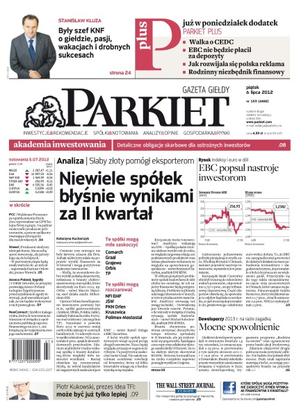 Słaby złoty pomógł eksporterom – niewiele spółek błyśnie wynikami za II kwartał; EBC popsuł nastroje inwestorom; Stanisław Kluza – były szef KNF o giełdzie, pasji, wakacjach i drobnych sukcesach; Waldemar Preussner po upublicznieniu Exolu chce wprowadzać na GPW kolejne firmy z grupy; deweloperzy 2013 r. na razie zagadką – mocne spowolnienie.