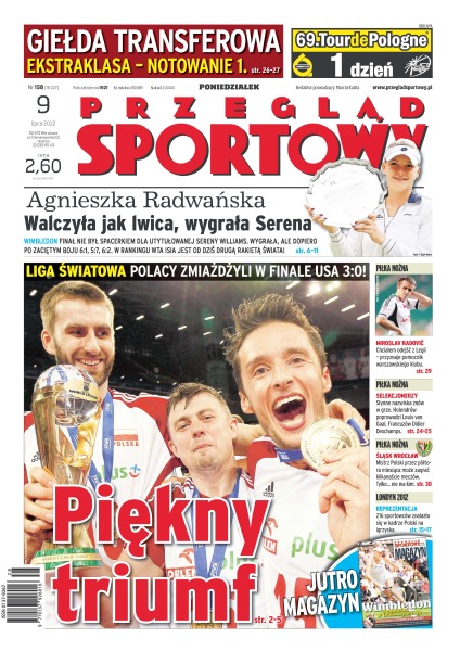 Polscy siatkarze pokonali reprezentację USA 3:0 i po raz pierwszy w historii wygrali Ligę Światową; Agnieszka Radwańska przegrała swój pierwszy finał wielkoszlemowy, ale i tak nasi kibice, którzy w narodowych barwach przyszli na „wzgórze Murraya”, mogli być z niej dumni; Roger Federer siódmy raz mistrzem Wimbledonu; Władymir Kliczko odniósł 58. zwycięstwo w karierze; na Silverstone nie spadła nawet kropelka zwiastowanego deszczu, ale kibice nie mogli narzekać na brak emocji – zwyciężył Mark Webber; kolarze mieli dylemat – czy w obliczu igrzysk wybrać Tour de France, czy pojechać w Tour de Pologne.