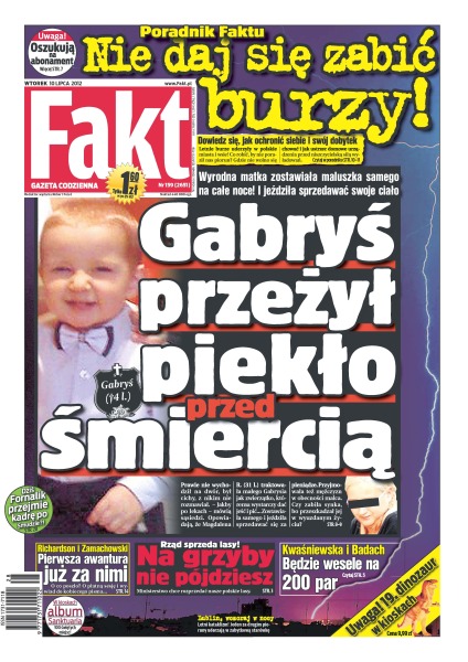 Rząd chce łatać budżet – planuje sprzedać 36 tys. hektarów lasów; na Jasnej Górze aż 300 tysięcy osób modliło się w intencji TV Trwam; wesele Kwaśniewskich na 200 par – Ola i Kuba zaprosili gości do luksusowego hotelu nad Narwią; co zrobić, by nie poraził cię piorun; przedstawiamy najlepszy siatkarski zespół na świecie – polscy siatkarze dają nam co kilka lat tyle radości, ile już dawno nie udało się dać piłkarzom; dziś poznamy nowego szkoleniowca reprezentacji Polski – prawie na pewno będzie to trener Ruchu; Agnieszka Radwańska, zamiast grać na turnieju w Palermo, musi leżeć w łóżku, bo przeziębiła się na korcie w Londynie.