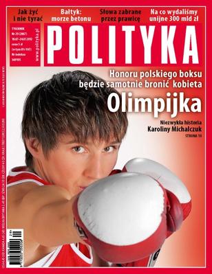 Karolina Michalczuk – polska nadzieja boksu na olimpiadzie; jak prawica przywłaszczyła sobie niektóre pojęcia; na co Polska wydała 300 mld zł z funduszy unijnych; wielkie debiuty literackie z lat 90.; Rosław Szaybo – twórca legendarnych okładek płyt; zasada życia „good enough” staje się credo sporej części dorastającej młodzieży; na polskich plażach jest coraz więcej betonowych gwiazdobloków; rozmowa z metropolitą warszawskim ks. kardynałem Kazimierzem Nyczem o tym, jak hierarchowie powinni się układać z państwem, o przywództwie i finansowaniu Kościoła, o in vitro i o tym, czy wiara jest prywatną sprawą.