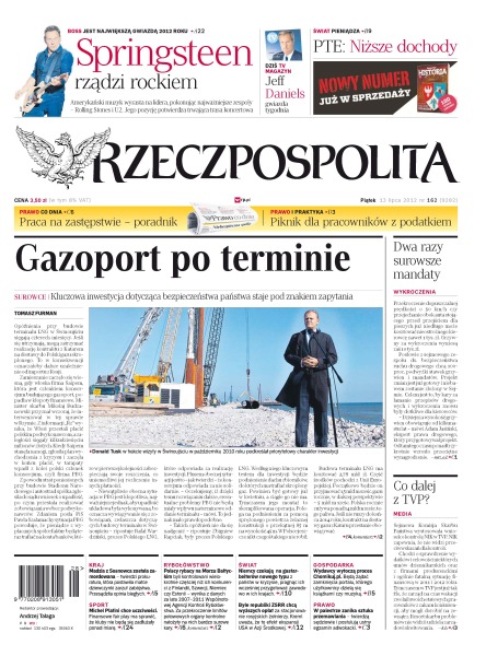 Kluczowa inwestycja dotycząca bezpieczeństwa państwa staje pod znakiem zapytania; zarząd TVP na czas wakacji zwolnił swoich etatowych pracowników z zakazu konkurencji, by mogli dorobić; w ciągu ostatnich pięciu lat 790 polskich łodzi rybackich kontrolowano prawie 11 tysięcy. razy; Berlin czyni starania, aby wykorzystać kryzys strefy euro dla poprawy kondycji demograficznej państwa; byłym republikom Związku Radzieckiego zaczyna ciążyć obecność rosyjskich żołnierzy; najnowsze odkrycia archeologów i genetyków każą od nowa napisać pradzieje Nowego Świata; Bruce Springsteen jest największą gwiazdą 2012 – nagrał świetną płytę, a w środę miał znakomity koncert w Pradze; Statoil jest najbardziej przejrzystą globalną firmą – na końcu rankingu są banki i spółki IT.