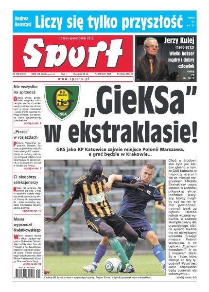 Między linami Jerzy Kulej nigdy nie leżał na deskach ani nawet nie był liczony – dopiero nieubłagana choroba policzyła Jego dni; GKS jako KP Katowice zajmie miejsce Polonii Warszawa, a grać będzie w Krakowie; swoje motto ujawnia Tomasz Fornalik, od czwartku nowy szkoleniowiec „Niebieskich”; Adam Kszczot w sobotę potwierdził, że będzie się liczył w olimpijskiej stawce; David Haye pewnie znokautował Derecka Chisorę; Grzegorz Fijałek i Mariusz Prudel stanęli na podium turnieju w Berlinie i z nadzieją mogą spoglądać w stronę Londynu; biało-czerwoni żeglarze złożyli ślubowanie olimpijskie; Kwiatkowski traci zaledwie 5 sekund do prowadzącego Moreno Mosera, co jest do odrobienia na ostatnim etapie w Krakowie.