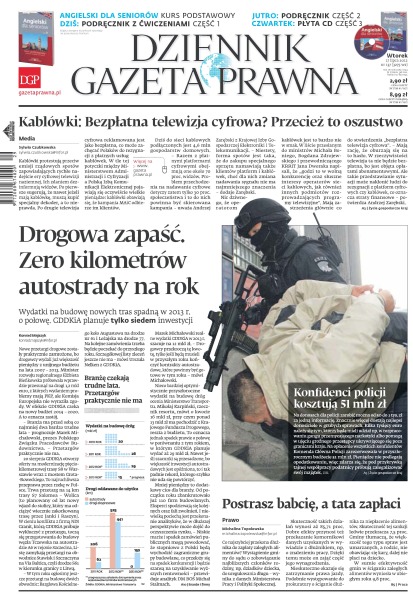 Kablówki protestują przeciw emisji rządowych spotów zapowiadających rychłe nadejście ery cyfrowej telewizji naziemnej; na donosach dla policji zarobić można od 50 do 1 tys. zł za jedną informację; co najszybciej przekona dłużnika do zapłaty zaległych alimentów; Ponad 300 tys. miejsc pracy może powstać w naszym kraju do 2020 roku; maleją szanse na to, że WORD-y zdążą rozstrzygnąć przetarg na nowy system informatyczny przed końcem wakacji – ponadto nadal poważnie szwankuje Centralna Ewidencja Kierowców, która miała być podstawą reformy; Paryż i Rzym wybrały dwie radykalnie różne metody wychodzenia z kryzysu; w jaki sposób zagraniczny turysta może odzyskać zapłacony VAT.