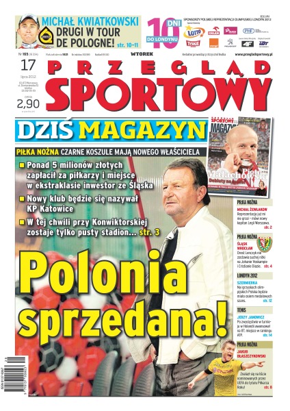 Józef Wojciechowski za ponad pięć milionów złotych sprzedał Polonię Warszawę firmie Ireneusza Króla WoodinterKom; w II rundzie eliminacji Ligi Europy na Kolejorza czeka zespół lepszy niż kazachski Żetysu; zmiany w Realu Madryt – w nowym sezonie Jose Mourinho chce mieć do dyspozycji tylko 22 piłkarzy; Jakub Błaszczykowski znalazł się na liście nominowanych do tytułu Piłkarza Roku; Moreno Moser wygrał klasyfikację generalną o pięć sekund przed Michałem Kwiatkowskim; Karolina Tymińska mimo urazu wywalczyła olimpijską nominację.