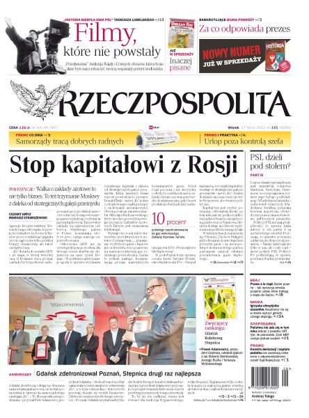 Ujawnione nieprawidłowości w rolniczych spółkach to poważny problem dla ministra Sawickiego i całego PSL; 12 pasażerom nie udało się odlecieć z Modlina do Londynu z powodu kolejek do odprawy; Nadrenia Północna –Westfalia postanowiła storpedować porozumienie pomiędzy Bernem i Berlinem; prezydent Rosji szuka w Kijowie polityka, który będzie skutecznie lobbował na Ukrainie interesy Kremla; naukowcy nie dysponują testami, które byłyby w stanie wykryć zabronione wspomaganie genetyczne; 69. Tour de Pologne wygrał Włoch Moreno Moser, Michał Kwiatkowski był drugi.