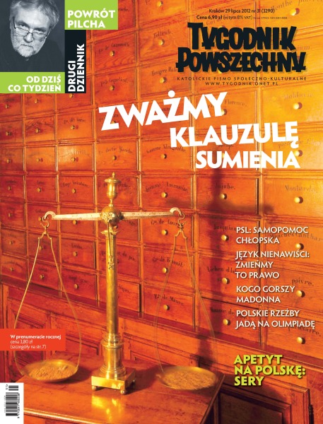 Jerzy Pilch wraca do tygodnika; Przemysław Wilczyński – klauzula niezgody; PSL po aferze taśmowej; koszty zmian klimatu; rzecznicy wojny światopoglądowej; Bałkany: trudne pojednanie Kościołów; Syria: wojna w stolicy; Londyn: pejzaż przed olimpiadą; Korea Północna pozoruje odwilż; Tybetanki walczą o niezależność; rozmowa Lobsangiem Sangayem, szefem tybetańskich władz na wychodźstwie; rozmowa z Zofią Lipską-Celińską; jak rozmnożyć użytkownika; Anita Piotrowska – kino, którego nie było; pożegnanie Andrzeja Łapickiego; polskie rzeźby jadą na olimpiadę; Michał Olszewski – gdzie ser dojrzewa.