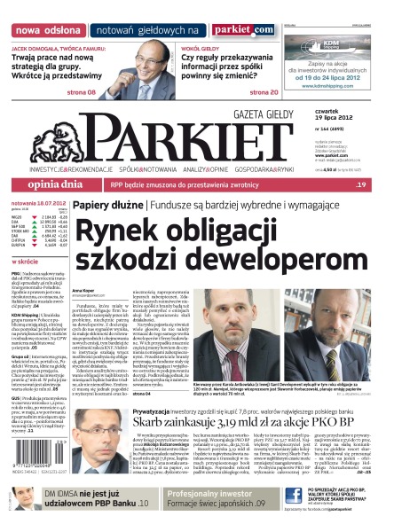 Papiery największego banku w Polsce, oferowane przez resort skarbu, rozeszły się na pniu; czy trudny rynek obligacji zaszkodzi deweloperom; grupa o2 sprzeda akcje i pieniądze wyda na przejęcia; techniczna poezja prosto z Kraju Kwitnącej Wiśni; DM IDMSA nie jest już akcjonariuszem PBP Banku; produkcje przemysłowa i budowlana wyraźnie zwolniły – w przemyśle to głównie spadek zamówień eksportowych, a w budownictwie – hamowanie inwestycji.