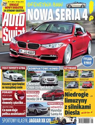 Ofensywa BMW – nowa seria 4; test Toyoty GT86 – rasowy sportowiec w rozsądnej cenie; zrób to sam – spawamy elementy z plastiku; ubezpieczenia – co nam daje polisa assistance; sportowy klasyk – Jaguar XK120; niedrogie limuzyny z silnikami Diesla; kompaktowe kombi – Chevrolet Cruze czy Opel Astra; VW Polo GTI – mały, rasowy i bardzo mocny; Silk Way Rally – rosyjski Dakar; Honda CR-V – oszczędniejsza i bezpieczniejsza; Hyundai Santa Fe – nowa generacja koreańskiego SUV-a; Mercedes klasy A – auto premium, drogie i dość awaryjne.