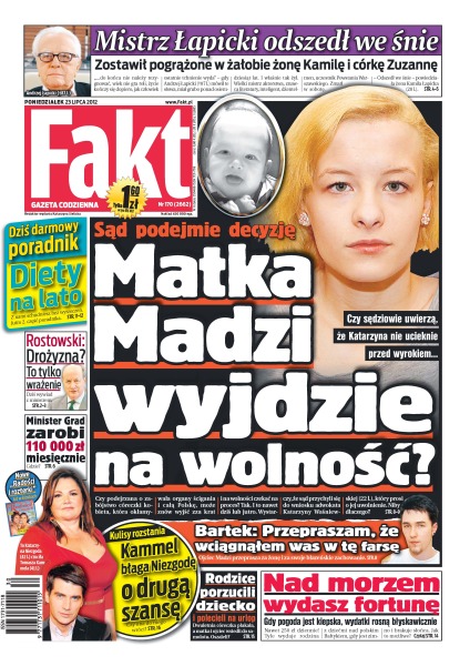 Mistrz Łapicki odszedł we śnie – ostawił pogrążoną w żałobie żonę Kamilę i córkę Zuzannę; czy matka tragicznie zmarłej Madzi wyjdzie na wolność; Kammel błaga Niezgodę o drugą szansę; rodzice porzucili dziecko a sami wyjechali na urlop; nad morzem wydasz fortunę – gdy pogoda jest kiepska, wydatki rosną błyskawicznie; minister Grad zarobi 110 000 zł miesięcznie.