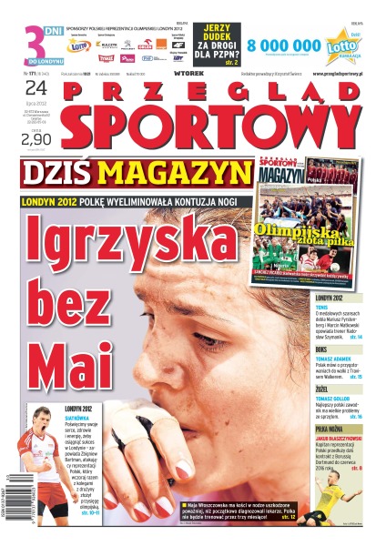 Maja Włoszczowska nie jedzie do Londynu – szczegółowe badania wykazały, że kontuzja jest poważniejsza niż pierwotnie sądzono; Tomasz Adamek mówi o przygotowaniach do walki z Travisem Walkerem; Jakub Błaszczykowski przedłuży dziś kontrakt z Borussią Dortmund do czerwca 2016 roku; Tomasz Gollob ma wielkie problemy ze sprzętem.