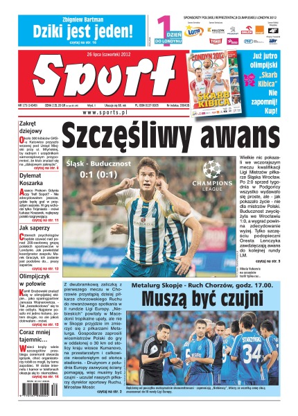 Wielkie nic pokazali piłkarze Śląska Wrocław podczas wczorajszego spotkania kwalifikacji Ligi Mistrzów – ale i tak awansowali do kolejnej rundy; czy Ruch Chorzów wykorzysta zaliczkę z pierwszego spotkania z Metalurg Skopie i awansuje do kolejnej fazy Ligi Europy; Łukasz Koszarek nie zadecydował jeszcze gdzie będzie grał w przyszłym sezonie; Kamil Grabowski znalazł się w kadrze olimpijskiej jako... sparingpartner Janusza Wojnarowicza.