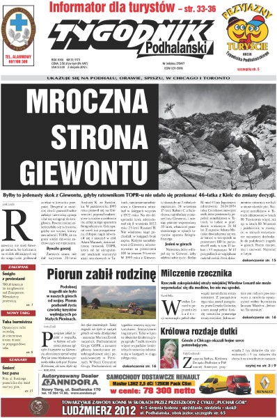 Piorun pozbawił życia czwórkę turystów wędrujących po Małych Pieninach; mieszkaniec Kielc próbował popełnić samobójstwo chcąc skoczyć z Giewontu; pod koniec każdego wakacyjnego tygodnia przy elektrowni w Koniówce pojawia się osad ze ścieków; Wojciech Majda, mieszkaniec Nowego Targu, rozpoczął akcję zbierania podpisów w obronie schroniska dla bezdomnych zwierząt na Kokoszkowie.