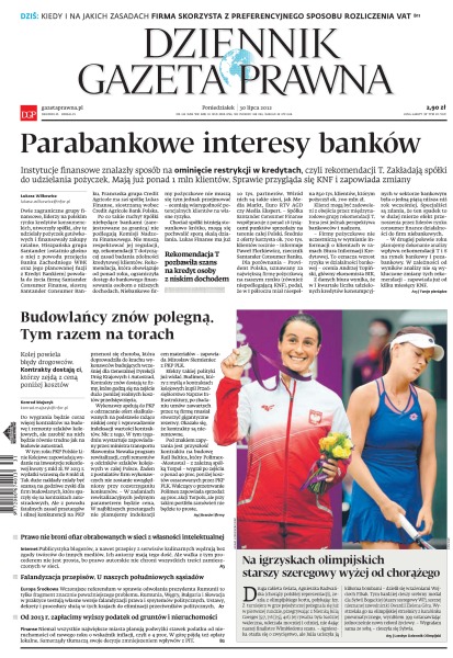 Parabankowe interesy banków – instytucje finansowe znalazły sposób na ominięcie restrykcji w kredytach; budowlańcy znów polegną – tym razem na torach; prawo nie broni ofiar obrabowanych w sieci z własności intelektualnej; falandyzacja przepisów – u naszych południowych sąsiadów; od 2013 r. zapłacimy wyższy podatek od gruntów i nieruchomości.
