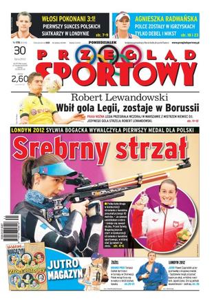 Sylwia Bogacka wywalczyła pierwszy medal dla Polskich na igrzyskach w Londynie; Legia przegrała wczoraj w Warszawie z mistrzem Niemiec 0:1 – jedyną bramkę w meczu strzelił Robert Lewandowski; Włosi pokonani – pierwszy sukces polskich siatkarzy w Londynie; Agnieszka Radwańska nie gra już w turnieju indywidualnym; Paweł Zagrodnik przegrał walkę o brązowy medal.