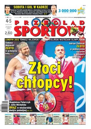 Mamy dwa złote medale na igrzyskach w Londynie – na najwyższym stopniu podium stanęli Tomasz Majewski i Adrian Zieliński; Waldemar Fornalik powołał piłkarzy z ekstraklasy na mecz z Estonią; Roger Federer wygrał w półfinale z Juanem Martinem Del Potro; Grzegorz Fijałek i Mariusz Prudel pokonali parę szwajcarską i awansowali do 1/4 finału; siatkówka – Polaków w turnieju olimpijskim czeka w sobotę spacerek z Wielką Brytanią.