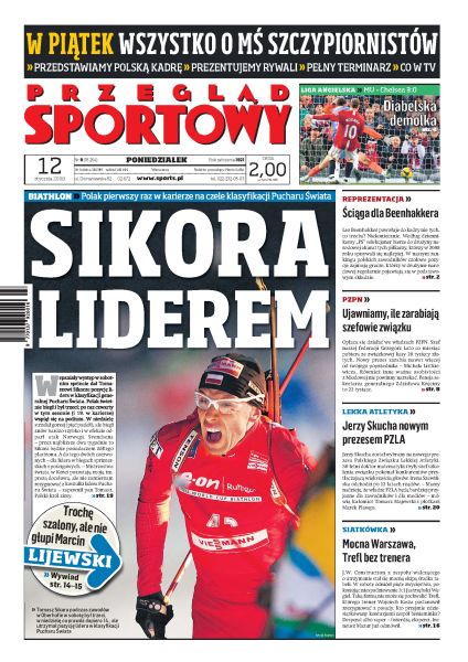Tomasz Sikora spełnił swoje marzenie, po raz pierwszy w karierze został liderem klasyfikacji generalnej Pucharu Świata; ranking najlepszych polskich piłkarzy 2008 roku; Manchester United pokonał na własnym stadionie Chelsea London 3:0; fatalny błąd Artura Boruca w meczu z drugoligowym Dundee; ile zarabiają najważniejsi działacze w PZPN; wywiad z Maciejem Iwańskim, pomocnikiem Legii Warszawa; Jerzy Skucha został nowym prezesem Polskiego Związku Lekkiej Atletyki.