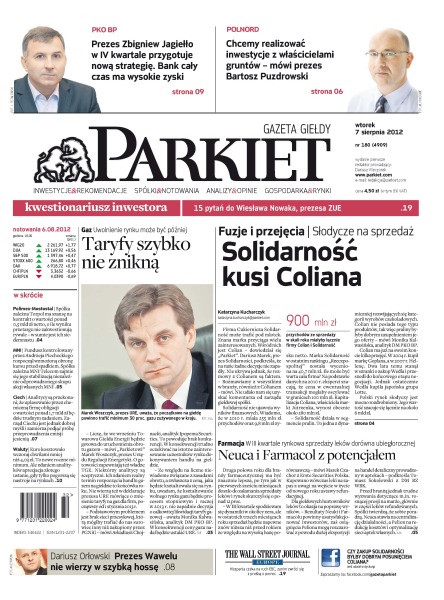 Wakacyjna minihossa na warszawskim parkiecie trwa w najlepsze; dlaczego liberalizacja rynku gazu może potrwać dużej, niż sądzono; firma Cukiernicza Solidarność kusi giełdowego Coliana; jak hurtowi dystrybutorzy leków