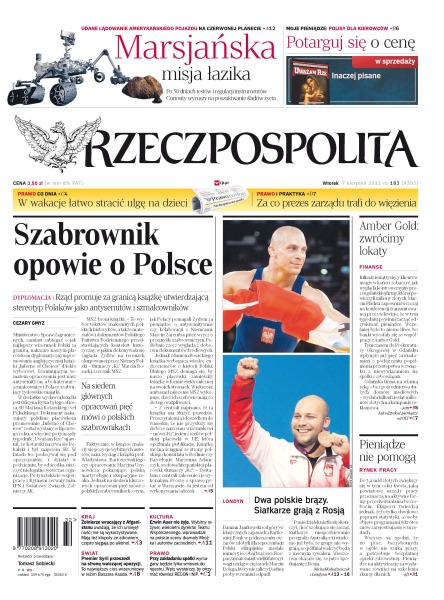 Rząd promuje za granicą książkę utwierdzającą stereotyp Polaków jako antysemitów i szmalcowników; weterani misji afgańskiej skarżą się, że armia nie wykorzystuje umiejętności, które tam zdobyli; w Ostrawie tli się nowy konflikt z miejscowymi Romami; odszedł Erwin Axer – wybitny dyrektor i reżyser – inteligent, doradca i przyjaciel dramatopisarzy, w tym Mrożka, Maksa Frischa i Dürrenmatta; po 30 dniach testów i regulacji instrumentów łazik Curiosity wyruszy na poszukiwanie śladów życia na Marsie; porażka polskich siatkarzy skazała ich na grę w ćwierćfinale z Rosją; Damian Janikowski i Bartłomiej Bonk mają brązowe medale – pierwszy w klasycznych zapasach, drugi w ciężarach.