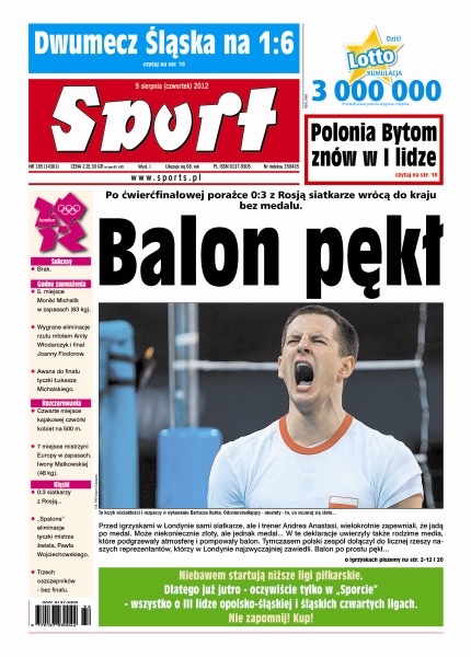 Po ćwierćfinałowej porażce 0:3 z Rosją siatkarze wrócą do kraju bez medalu; kariera Otylii Jędrzejczak znów na zakręcie – jej występ w igrzyskach zakończył się niepowodzeniem; nasza czwórka na 500 metrów znów tylko na czwartej pozycji; sztab ze zdenerwowania nie spał po nocach, a co dopiero musiało dziać się z zawodnikami – mówi Paweł Kowalski, trener windsurfingowej kadry; Paweł Wojciechowski spalił wszystkie trzy próby w eliminacjach i nie wystąpi w finale skoku o tyczce; wczorajsza solenizantka, Anita Włodarczyk, już pierwszym rzutem na odległość 75,68 wygrała eliminacje w młocie.
