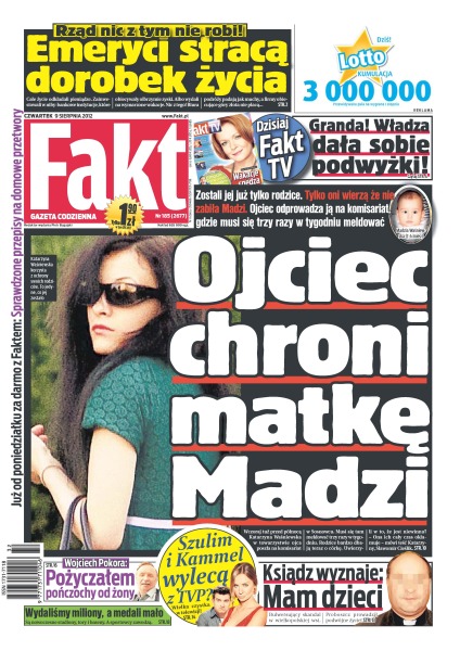 Aż strach jechać na wakacje – tysiące ludzi zostało już na lodzie po upadku biur podróży; ani bezrobocie, ani bieda mu nie grożą – skompromitowany szef resortu rolnictwa będzie teraz brał pieniądze z Sejmu; unikalne zdjęcia z prywatnych apartamentów głowy państwa; jak żyją dzieci polityków; proboszcz Stanisław D. był ceniony przez parafian, ale prowadził podwójne życie; z anteny TVP zniknie kilkanaście programów; jak Joanna Krupa dba o siostrę; czy Borys Szyc wybaczył już swojej partnerce; kiedyś polscy sportowcy mieli fatalne warunki do treningów, mimo to zdobywali olimpijskie medale – dzisiaj mają komfortowe warunki, lecz sukcesów coraz mniej; czarny dzień polskich siatkarzy na igrzyskach w Londynie – w ćwierćfinałowym meczu biało-czerwoni okazali się dużo słabsi od Rosjan.