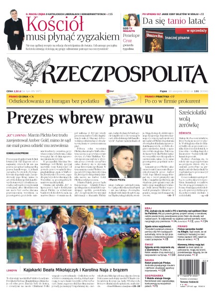Marcin Plichta bez trudu zarejestrował Amber Gold, mimo że sąd nie miał prawa udzielić mu zezwolenia; garstka rodziców wyśle we wrześniu do szkół swe sześcioletnie dzieci – reforma znów się może opóźnić; w stolicy stanęły pierwsze urządzenia w Polsce z biletami komunikacji miejskiej oraz kolejowymi; zaprowadzenie ładu w rejonie opanowanym przez bezprawie to pierwszy test dla nowych władz Egiptu; pięć lat od wybuchu światowego kryzysu finansowego nie ma nadziei na jego rychłe zakończenie; przez złą interpretację prawa w amerykańskich więzieniach niesłusznie siedzi kilka tysięcy osób; androida pływającego kraulem, delfinem i na grzbiecie skonstruowali Japończycy; Przemysław Miarczyński, brązowy medalista w windsurfingu, o kosztach sukcesu i przyszłości w kitesurfingu; Usain Bolt obronił złoto na 200 m, rekord świata też był, ale Davida Rudishy na 800.