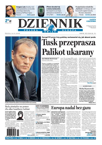 Donald Tusk przedstawił strategię, jak uniezależnić się od rosyjskich surowców energetycznych; abp Józef Michalik najpoważniejszym kandydatem na przewodniczego episkopatu; PO ukarała Janusza Palikota; łagodniejsze przepisy o używaniu broni dla żołnierzy przebywających na misjach zagranicznych; coraz więcej ludzi wpada w depresję w wyniku kryzysu finansowego; Ukraińcy nie chcą zaakceptować proponowanych przez Moskwę warunków tranzytu gazu; mimo apeli społeczności międzynarodowej nasilają się walki w Gazie.