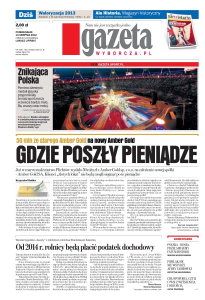 Już w marcu małżeństwo Plichtów wydało 50 mln zł z Amber Gold sp. z o.o. na założenie nowej spółki – Amber Gold SA; fundusz ratunkowy dla banków, reforma emerytur górniczych i rodzina – współpracownicy premiera szykują tematy do jego wrześniowego wystąpienia; kandydat Republikanów na prezydenta Mitt Romney gra va banque: wybrał na swego zastępcę młodego, radykalnego kongresmena Paula Ryana, którego pomysły na naprawę Ameryki budzą wielkie emocje; na informację o waloryzacji czeka co roku blisko 10 milionów osób; w Polsce działa przynajmniej kilkadziesiąt parabanków i kilkaset firm pożyczkowych, które nie podlegają nadzorowi bankowemu; czy recykling nie jest gorszy niż jego brak; rękawiczka, która pozwala słyszeć i mówić.
