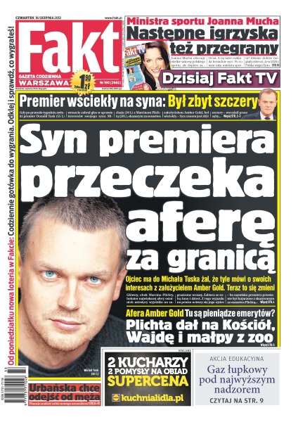 Zestawiona przez nowego selekcjonera Waldemara Fornalika reprezentacja Polski przegrała po raz pierwszy w historii z Estonią, a przy tym wypadła tak beznadziejnie, że żal było patrzeć; ojciec ma do Michała Tuska żal, że tyle mówi o swoich interesach z założycielem Amber Gold; Marcin Plichta był hojnym sponsorem świątyni, małp i filmowców; tajemnice Plichty vel Stefańskiego; czy Natasza Urbańska chce odejść od męża; gwiazda „Czasu honoru” i „M jak miłość” źle odnajduje się w dzisiejszych czasach; Joanna Mucha jest niezadowolona z 10 medali i chce reformować polski sport, tylko nie wie, kiedy przyniesie to efekty; były selekcjoner krytykuje zawodników za klęskę na Euro – o sobie nie wspomina.